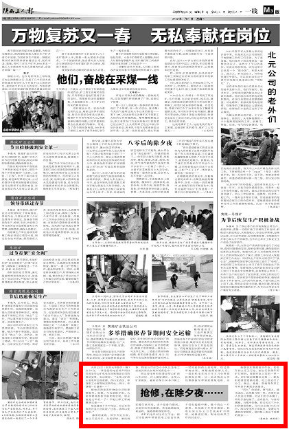接電話的是該礦物業(yè)公司經(jīng)理薛振軍,他想,今天是除夕夜,大家等著觀看春節(jié)聯(lián)歡晚會呢,明天就是大年初一了!不能讓職工家屬摸黑過夜……