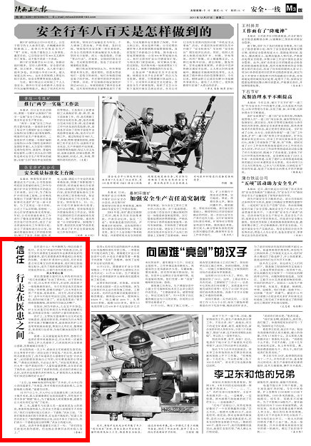 信任是什么?書中解釋為:相信而敢于托付。在互為“利益共同體”的醫(yī)患之間,信任不僅代表著醫(yī)生較高的專業(yè)素質(zhì)和良好的道德素養(yǎng),更代表著患者的尊重和以命相托的信賴。在銅川礦務(wù)局中心醫(yī)院,有許多醫(yī)患之間互尊互信的和諧畫面,他們相互鼓勵(lì)相互配合,成為了戰(zhàn)勝疾病的同盟軍,他們用對(duì)彼此的信任,讓愛行走在醫(yī)患之間。