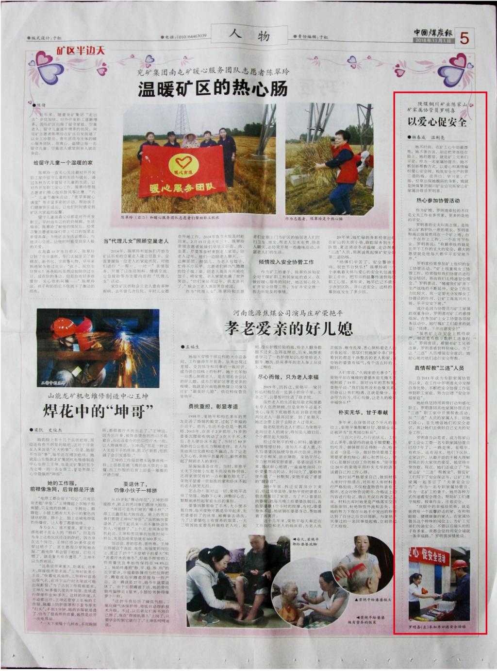 “我眼中的幸福很簡單,就是能擁有一個溫馨舒適的家,有和和睦睦睦、健健康康的家人,用家屬協(xié)管員這個特殊的崗位,為礦工兄弟們傳遞安全,不管以后肩頭的擔(dān)子有多重,我會堅持用安全鋪就一條幸福路”。羅明喜深情地說。