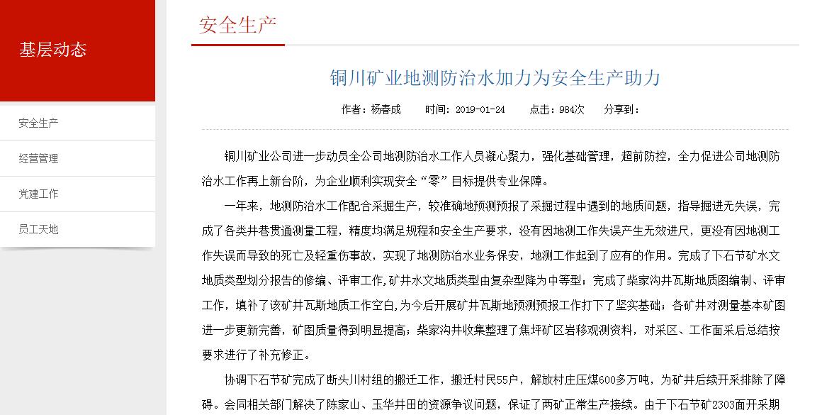 銅川礦業(yè)地測防治水加力為安全生產(chǎn)助力