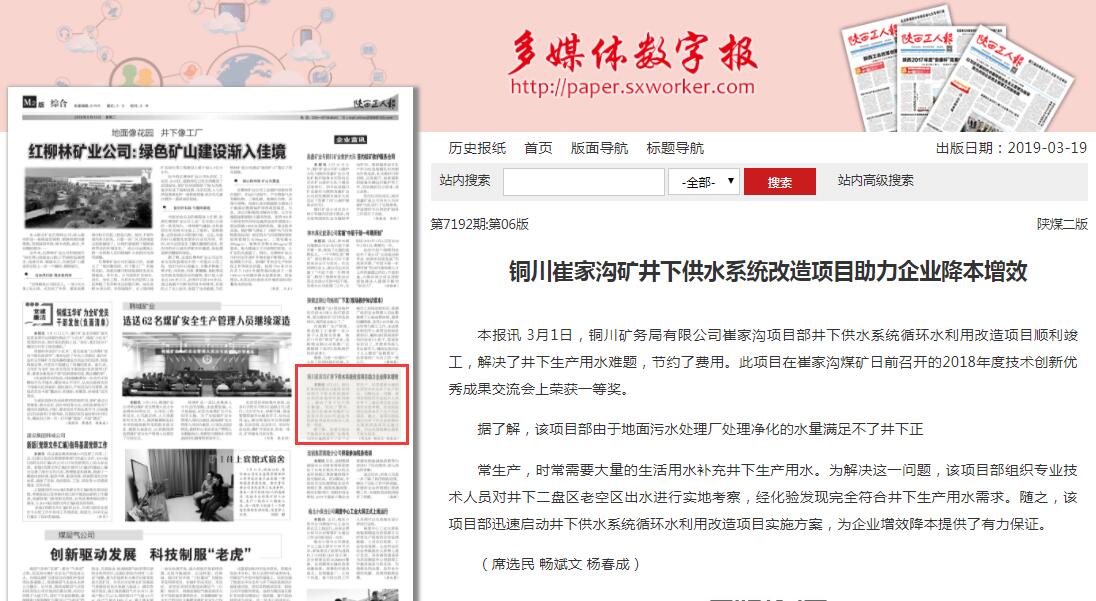 銅川崔家溝礦井下供水系統(tǒng)改造項目助力企業(yè)降本增效