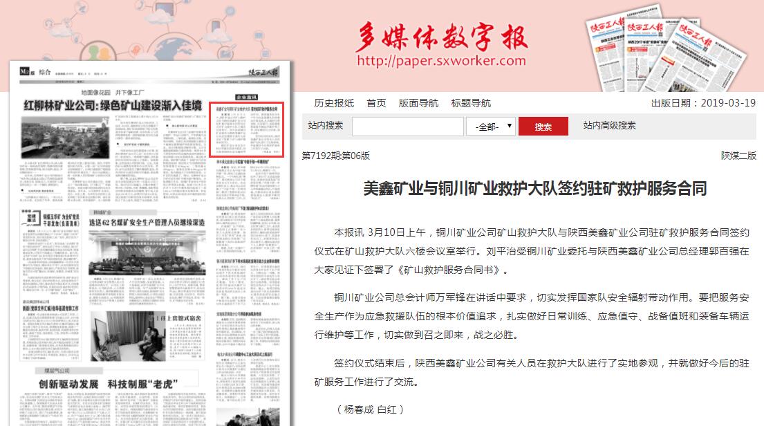 美鑫礦業(yè)與銅川礦業(yè)救護(hù)大隊(duì)簽約駐礦救護(hù)服務(wù)合同