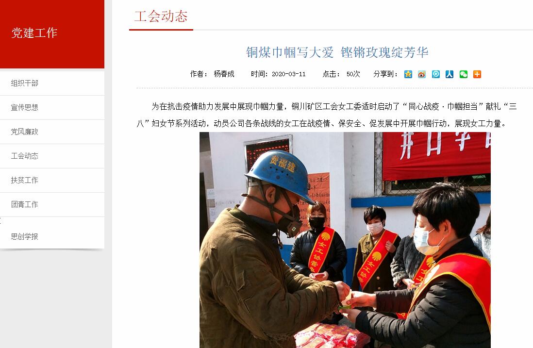 為在抗擊疫情助力發(fā)展中展現(xiàn)巾幗力量,銅川礦區(qū)工會(huì)女工委適時(shí)啟動(dòng)了“同心戰(zhàn)疫·巾幗擔(dān)當(dāng)”獻(xiàn)禮“三八”婦女節(jié)系列活動(dòng),動(dòng)員公司各條戰(zhàn)線(xiàn)的女工在戰(zhàn)疫情、保安全、促發(fā)展中開(kāi)展巾幗行動(dòng),展現(xiàn)女工力量。