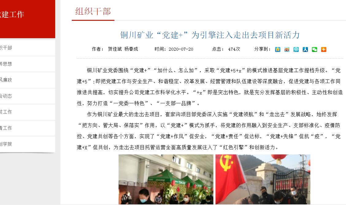 作為銅川礦業(yè)最大的走出去項(xiàng)目,崔家溝項(xiàng)目部黨委深入實(shí)施“黨建領(lǐng)航”和“走出去”發(fā)展戰(zhàn)略,始終發(fā)揮“把方向、管大局、保落實(shí)”作用,以“黨建+”模式為抓手,將黨建的作用融入到安全生產(chǎn)、支部標(biāo)準(zhǔn)化、疫情防控、黨建共創(chuàng)等各個方面,實(shí)現(xiàn)了“黨建+作風(fēng)”促安全,“黨建+責(zé)任”促達(dá)標(biāo),“黨建+先鋒”促抗“疫”,“黨建+X”促共創(chuàng),為走出去項(xiàng)目托管運(yùn)營全面高質(zhì)量發(fā)展注入了“紅色引擎”和創(chuàng)新活力。