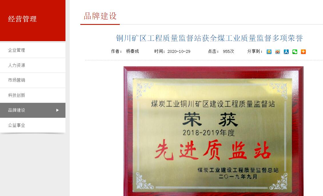近日,從全國(guó)煤炭工業(yè)建設(shè)工程質(zhì)量監(jiān)督總站傳來(lái)消息,銅川礦區(qū)建設(shè)工程質(zhì)量監(jiān)督站榮獲煤炭工業(yè)建設(shè)工程質(zhì)量監(jiān)督2018-2019年度先進(jìn)質(zhì)監(jiān)站榮譽(yù)稱號(hào),這是該站蟬聯(lián)此榮譽(yù)。此外銅川礦區(qū)質(zhì)監(jiān)站站長(zhǎng)艾龍龍榮獲優(yōu)秀站長(zhǎng),工程師解宇哲、李煜龍榮獲優(yōu)秀質(zhì)監(jiān)人員同獲表彰,集體個(gè)人同時(shí)獲此殊榮這在礦業(yè)公司工程質(zhì)監(jiān)史上尚屬首次。