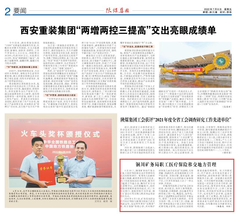 經(jīng)銅川市醫(yī)保局與礦務(wù)局密切聯(lián)系、相互配合,在職工參保繳費(fèi)、待遇政策、結(jié)算報(bào)銷、經(jīng)辦服務(wù)等方面實(shí)現(xiàn)了統(tǒng)一化、規(guī)范化、標(biāo)準(zhǔn)化,保證了過渡期間醫(yī)療保險(xiǎn)的平穩(wěn)運(yùn)行,保障了企業(yè)職工的利益。經(jīng)雙方協(xié)商一致,自今年7月1日起,銅川礦務(wù)局有限公司職工醫(yī)療保險(xiǎn)正式移交地方管理,這是響應(yīng)國家政策要求的有利舉措。銅川因煤而興,因礦設(shè)市,多年來雙方建立了深情厚誼,政府相關(guān)部門將用心用情服務(wù)企業(yè),進(jìn)一步促進(jìn)企業(yè)經(jīng)營發(fā)展。銅川市政府要求銅川市醫(yī)保局要進(jìn)一步加強(qiáng)與企業(yè)的聯(lián)系,按照協(xié)議約定,強(qiáng)化責(zé)任落實(shí),確保業(yè)務(wù)交接規(guī)范有序,讓職工醫(yī)保不斷檔,共同做好醫(yī)保信訪維穩(wěn)工作,及時(shí)化解社會(huì)矛盾,讓服務(wù)更便捷、職工更滿意,努力把黨和政府的醫(yī)?;菝裾呗涞綄?shí)處,并希望企業(yè)與政府的合作向更深領(lǐng)域發(fā)展,為構(gòu)建幸福美麗新銅川互利共贏。