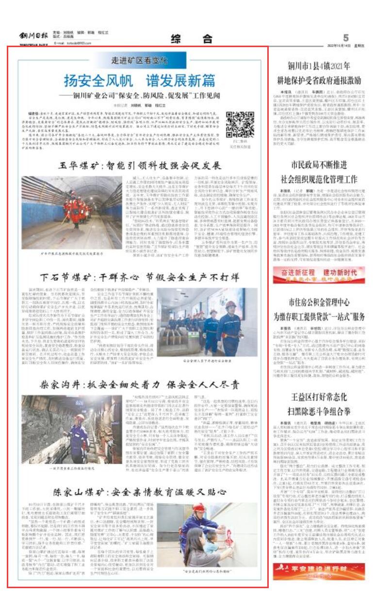 安全生產是底線、是紅線,更是生命線。今年以來,陜煤集團銅川礦業(yè)公司以“時時放心不下”的責任感,緊緊圍繞“疫情要防住、經濟要穩(wěn)住、發(fā)展要安全”的總體要求,聚焦扎實做好“穩(wěn)增長、防風險、強作風”各項工作,從嚴從細從實抓好安全生產,慎終如始開展常態(tài)化疫情防控,堅持不懈嚴抓安全生產不放松,防患未然提升應對處置能力。該公司上下通過切實打好主動仗、下好先手棋,繃緊安全生產之弦,夯實高質量發(fā)展之基。
