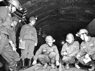 礦工在井下按標(biāo)準(zhǔn)化要求精心測(cè)量數(shù)據(jù)