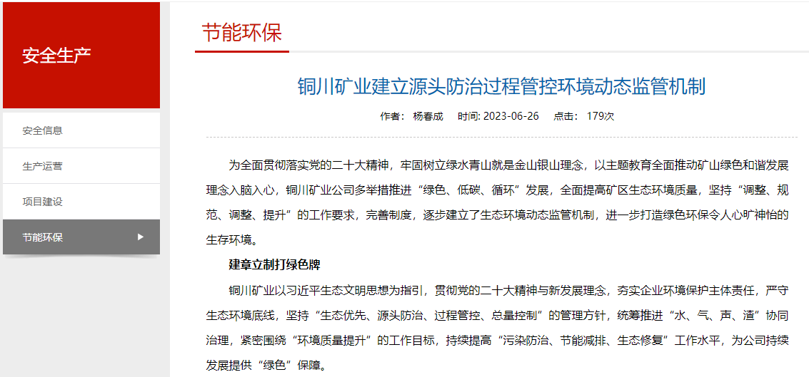 為全面貫徹落實(shí)黨的二十大精神,牢固樹立綠水青山就是金山銀山理念,以主題教育全面推動(dòng)礦山綠色和諧發(fā)展理念入腦入心,銅川礦業(yè)公司多舉措推進(jìn)“綠色、低碳、循環(huán)”發(fā)展,全面提高礦區(qū)生態(tài)環(huán)境質(zhì)量,堅(jiān)持“調(diào)整、規(guī)范、調(diào)整、提升”的工作要求,完善制度,逐步建立了生態(tài)環(huán)境動(dòng)態(tài)監(jiān)管機(jī)制,進(jìn)一步打造綠色環(huán)保令人心曠神怡的生存環(huán)境。