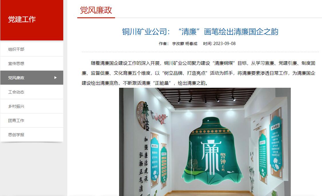 隨著清廉國企建設(shè)工作的深入開展,銅川礦業(yè)公司聚力建設(shè)“清廉銅煤”目標(biāo),從學(xué)習(xí)宣廉、黨建引廉、制度固廉、監(jiān)督促廉、文化育廉五個維度,以“樹立品牌、打造亮點”活動為抓手,將清廉要素滲透日常工作,為清廉國企建設(shè)繪出清廉底色,不斷激活清廉“正能量”,繪出清廉之韻。