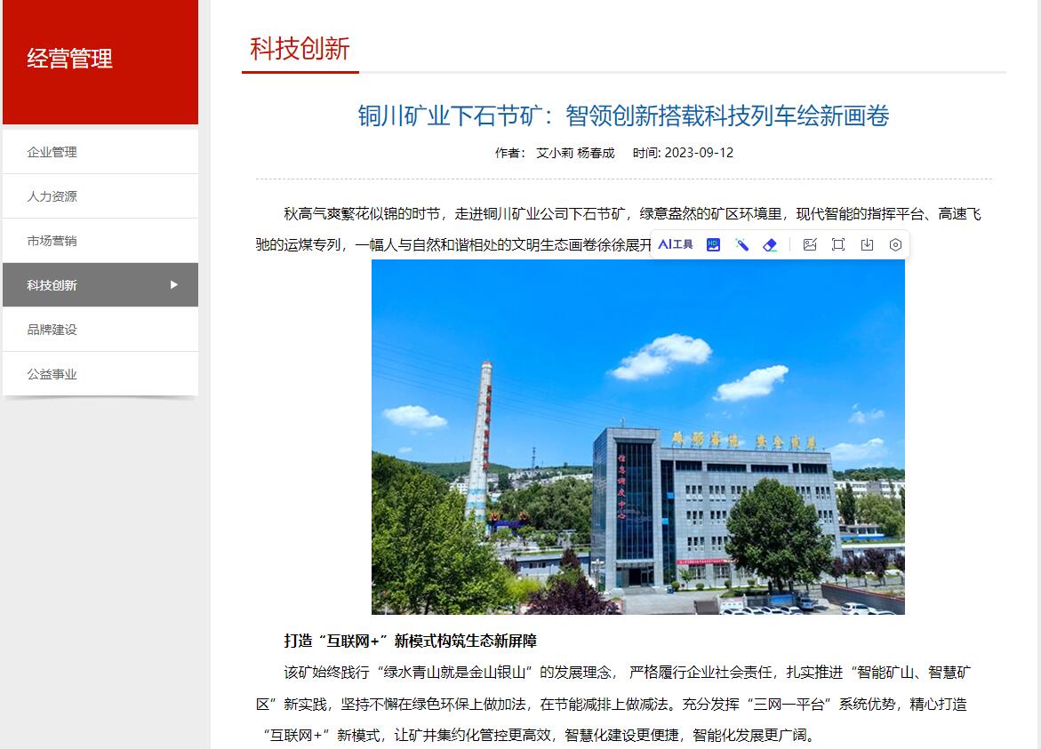 該礦始終踐行“綠水青山就是金山銀山”的發(fā)展理念, 嚴(yán)格履行企業(yè)社會(huì)責(zé)任,扎實(shí)推進(jìn)“智能礦山、智慧礦區(qū)”新實(shí)踐,堅(jiān)持不懈在綠色環(huán)保上做加法,在節(jié)能減排上做減法。充分發(fā)揮“三網(wǎng)一平臺(tái)”系統(tǒng)優(yōu)勢(shì),精心打造“互聯(lián)網(wǎng)+”新模式,讓礦井集約化管控更高效,智慧化建設(shè)更便捷,智能化發(fā)展更廣闊。
