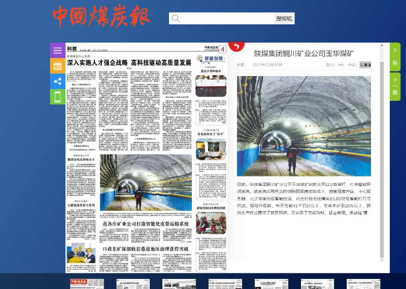 日前,陜煤集團銅川礦業(yè)公司玉華煤礦創(chuàng)新應(yīng)用LED巷道燈,打造智能照明系統(tǒng)。該系統(tǒng)采用先進的物聯(lián)網(wǎng)通信控制技術(shù),由管理客戶端、中心服務(wù)器、光纖傳輸防爆智能控臺、內(nèi)含燈控無線模塊的LED防爆智能燈具等組成。相較升級前,每天節(jié)能45千瓦時以上,節(jié)電率達到20%以上,既為生產(chǎn)作業(yè)提供了充足照明,又實現(xiàn)了節(jié)能降耗、智慧管理。朱建鋒 攝