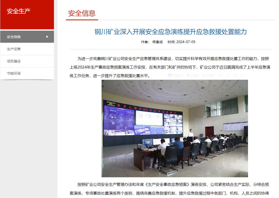 為進(jìn)一步完善銅川礦業(yè)公司安全生產(chǎn)應(yīng)急管理體系建設(shè),切實提升科學(xué)有效開展應(yīng)急救援處置工作的能力,按照上級2024年生產(chǎn)事故應(yīng)急預(yù)案演練工作安排,在有關(guān)部門和礦井的協(xié)同下,礦業(yè)公司于近日圓滿完成了上半年應(yīng)急演練工作任務(wù),進(jìn)一步提升了應(yīng)急救援處置水平。