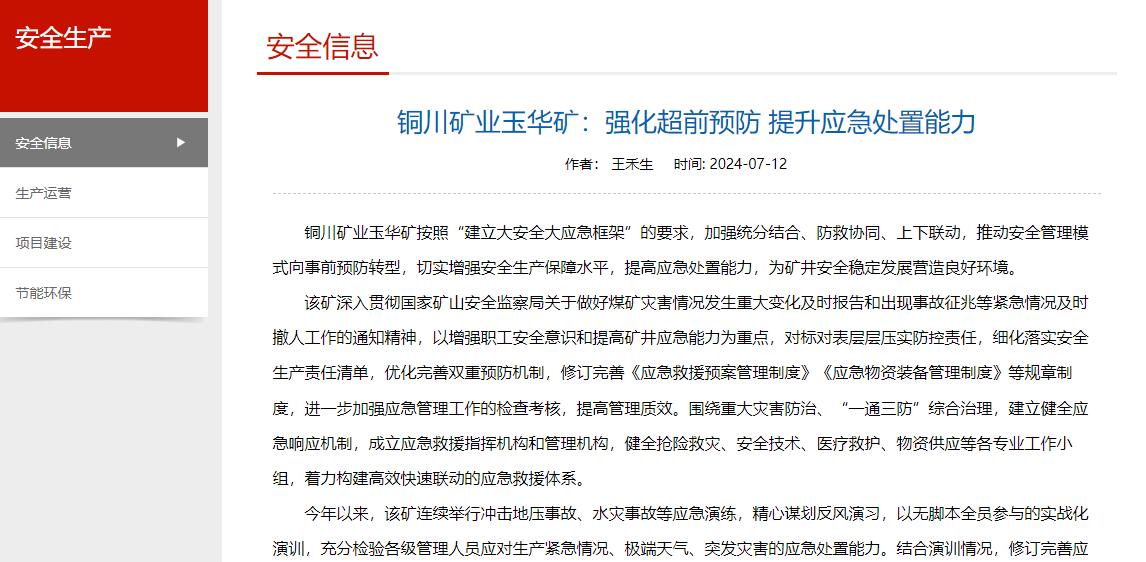 銅川礦業(yè)玉華礦:強(qiáng)化超前預(yù)防 提升應(yīng)急處置能力