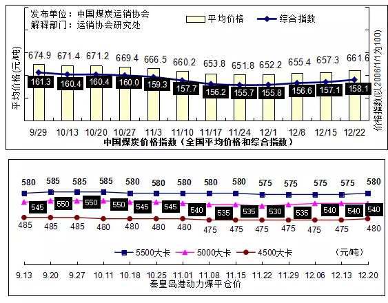 環(huán)渤海港口存煤高位徘徊,價(jià)格繼續(xù)上漲。近日秦皇島港鐵路煤炭調(diào)入相對穩(wěn)定,下游用戶采購情況良好,惡劣天氣一度影響港口煤炭發(fā)運(yùn),錨地船舶數(shù)量有所增多,港口煤炭庫存量高位徘徊。至12月22日,秦皇島港存煤677萬噸,比15日增加6萬噸。港口煤炭市場成交順暢,動(dòng)力煤價(jià)格繼續(xù)上漲,其中12月20日秦皇島港5000大卡/千克以外的各品質(zhì)動(dòng)力煤,以及曹妃甸港、京唐港5000和4500大卡/千克動(dòng)力煤價(jià)格比13日均上漲5元/噸;天津港動(dòng)力煤價(jià)格總體平穩(wěn)。