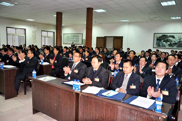 該礦黨委書記李新中作了題為《解放思想 更新觀念 為建設(shè)文明富裕和諧美麗新礦區(qū)而不懈奮斗》的黨委工作報(bào)告。回顧過去8年工作,有六大標(biāo)志:安全穩(wěn)定和諧礦區(qū)建設(shè)越來越好,今年實(shí)現(xiàn)“雙零”目標(biāo)勝券在握;采掘生產(chǎn)水平不斷提高,累計(jì)生產(chǎn)原煤901.6萬噸,掘進(jìn)進(jìn)尺7.3萬米。今年預(yù)計(jì)產(chǎn)煤115.6萬噸,進(jìn)尺7881米,創(chuàng)歷史最高;黨建質(zhì)量管理體系得到加強(qiáng),ISO9000質(zhì)量認(rèn)證體系全面應(yīng)用;基礎(chǔ)建設(shè)更加牢固,采煤機(jī)械化水平達(dá)100%,掘進(jìn)機(jī)械化達(dá)67%,主要設(shè)備和重點(diǎn)項(xiàng)目改造基本完成;職工生活水平顯著提高,年人均收入由1.4萬元增至8.8萬元,翻6.4倍;企業(yè)文化建設(shè)亮點(diǎn)紛呈,地面園林化漸成規(guī)模,安居工程打造了“粉紅礦井”主體,全礦幸福指數(shù)大幅升級。主要抓好了六個(gè)方面的工作:重視理論武裝,思想建設(shè)成效顯著;夯實(shí)組織基礎(chǔ),黨的建設(shè)全面加強(qiáng);強(qiáng)化廉政建設(shè),干部作風(fēng)得以轉(zhuǎn)變;關(guān)注民心工程,推進(jìn)和諧礦區(qū)建設(shè);推動(dòng)企業(yè)文化,引領(lǐng)礦井科學(xué)發(fā)展;做好群團(tuán)工作,提升民主管理水平。并確定了今后5年的指導(dǎo)思想、奮斗目標(biāo)和工作任務(wù)。決心深入學(xué)習(xí)、貫徹十八大精神,充分發(fā)揮黨委職能,鞏固安全、穩(wěn)定“雙零”目標(biāo),杜絕重傷以上事故,原煤產(chǎn)銷量500萬噸以上,建成全國瓦斯治理示范礦井、全國企業(yè)文化示范礦、集團(tuán)公司安全生產(chǎn)精細(xì)化示范礦井,完成礦業(yè)公司下達(dá)的各項(xiàng)目標(biāo)任務(wù),職工收入穩(wěn)步增長,躋身國家安全質(zhì)量標(biāo)準(zhǔn)化礦井行列,圍繞礦井安全、生產(chǎn)等中心工作中,切切實(shí)實(shí)提升黨建科學(xué)化水平。