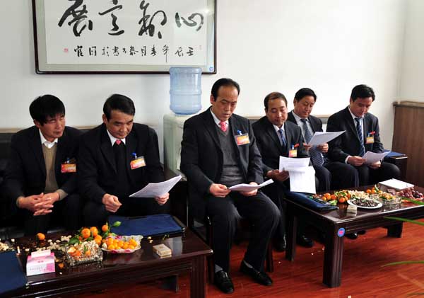 代表們認(rèn)真審議和討論會(huì)議報(bào)告