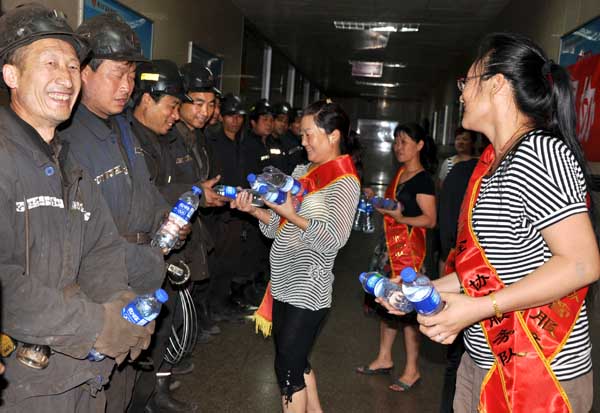 27日下午3點(diǎn),東坡礦井口增設(shè)的“清涼臺”前,20余名女工家屬粉面含笑,倒上一杯杯茶水,送上一句句叮嚀,熱情地為升、下井職工送清涼。端上茶水,礦哥樂開了花,打趣地哼唱:“美女井口送清涼,咱下井的人啊——真高興!”掘四隊(duì)隊(duì)長李保舉高興地說:“這不僅是安全茶,還是情誼茶和清涼茶,是咱安全生產(chǎn)的動(dòng)力茶!”礦哥們一致附和:就是!就是動(dòng)力茶!女工協(xié)管員時(shí)婷婷感嘆:“送杯茶,是舉手之勞。若能讓礦工們感受到一絲關(guān)懷、一份關(guān)切、一片關(guān)心,對我就是一件美好的事!”東坡礦推出“粉紅礦井”的浪漫之約,注重文化引領(lǐng),調(diào)劑礦區(qū)生活,使職工家屬感受到了平常日子的美好與浪漫,也讓他們進(jìn)一步融入到了“東坡文化”中,體味本礦文化名片“粉紅礦井”的內(nèi)涵與魅力。大家紛紛感嘆:頂著“粉紅礦井”的名片,我們應(yīng)該有高素質(zhì)才能匹配!