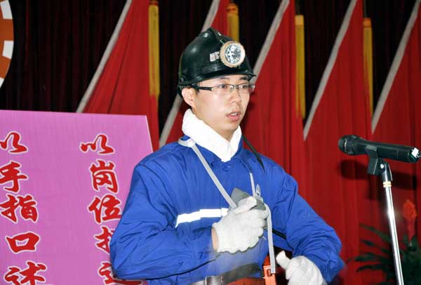 “設備完好,支護可靠,周圍無人,確認完畢,可以開機?!比涨埃跂|坡煤礦五樓會議“雙述”演示競賽現(xiàn)場, 來自全礦14個單位的競賽選手齊聚一堂,激烈對決,掘四隊職工黃小平等3人用自己精彩表現(xiàn)奪得了 競賽前三名,各贏得獎金1000元。