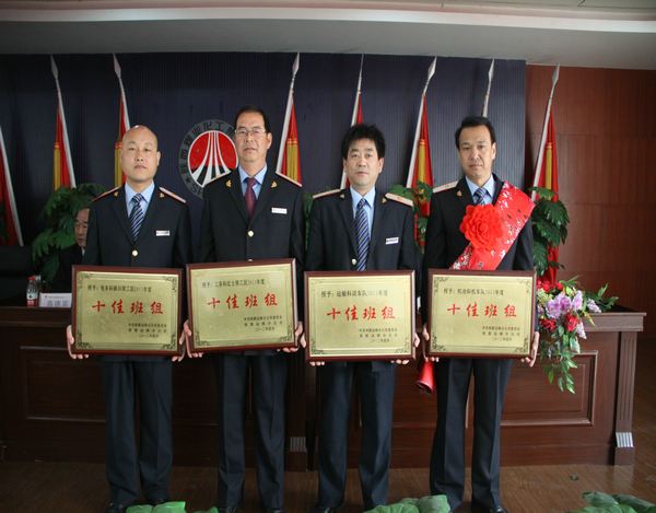 這次受到表彰的模范六好單位3個、科級先進集體5個、十佳班組5個、明星班組9個、優(yōu)秀機車組4個、文明車站3個、優(yōu)質(zhì)工區(qū)5個、明星員工5名、優(yōu)秀班組長7名、先進個人57名、學習型家庭2個、道德模范6名、“雙述”大賽獲獎?wù)?名。