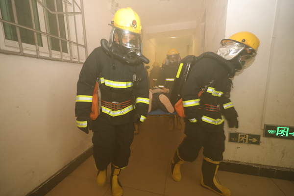 隨著橙色煙霧升起,模擬火場逃生演練正式啟動。參演人員嚴格遵循預(yù)定疏散路線,用濕毛巾捂住口鼻,低姿、快速、有序地從單身樓撤離。演練還設(shè)置了“傷員救援”情景,專業(yè)人員現(xiàn)場演示了擔(dān)架轉(zhuǎn)運與基礎(chǔ)急救流程,進一步增強了大家在突發(fā)事件中的協(xié)作與救助能力。整個演練過程組織有序、貼近實戰(zhàn),既是一堂生動的安全教育課,也是落實安全生產(chǎn)責(zé)任的生動實踐。