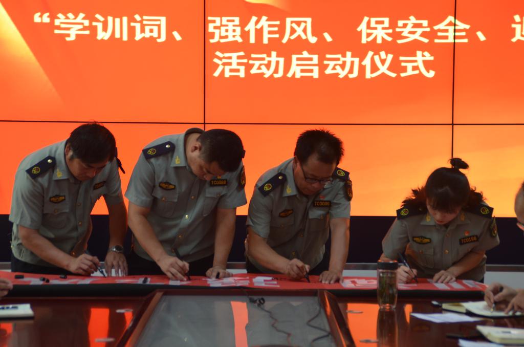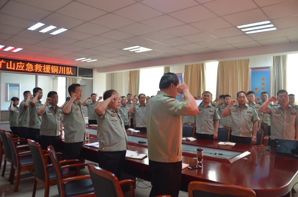 會議首先傳達國家安全生產應急救援中心《關于開展“學訓詞、強作風、保安全、迎大慶”活動的通知》,宣讀大隊活動實施方案,細化節(jié)點,明確要求,落實責任。隨后,全體與會同志起立面向隊旗進行了莊嚴宣誓,井進行了活動簽名儀式。