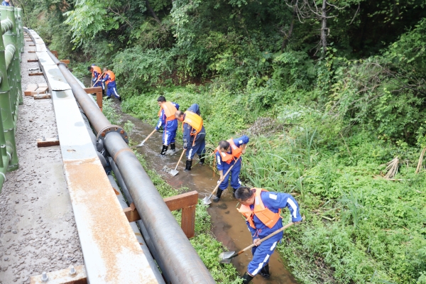 “報告調(diào)度指揮中心,污水處理站后河道山體部分垮塌,造成河道被堵,河水上漲,請指示?!毕挛?5時,正在礦區(qū)河道巡視的雨季“三防”小組工作人員通過電話向調(diào)度指揮中心調(diào)度員匯報礦區(qū)河道受災(zāi)情況。