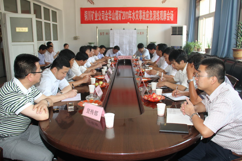 為了認真貫徹落實銅川礦業(yè)公司2011年應(yīng)急預(yù)案演練活動安排,增強職工對突發(fā)性事故的安全防范意識,提升職工的防災(zāi)抗災(zāi)能力,經(jīng)過充分準備, 6月29日,金華山礦結(jié)合實際,在該礦開展了“水災(zāi)事故”應(yīng)急預(yù)案演練。當天上午,礦業(yè)公司總調(diào)度室、安監(jiān)部、救護大隊、動力部、生產(chǎn)部、地測部、通風(fēng)部、宣傳部等有關(guān)部門,金華山礦黨委書記武永發(fā),副礦長、總工程師許劉曉,黨委副書記劉貴平、何剛等黨政領(lǐng)導(dǎo)以及東坡礦、王石凹礦、鴨口礦、徐家溝礦等東區(qū)其他四個礦井的安監(jiān)處長、調(diào)度室主任、生產(chǎn)科長、地測科長、動力科長參加了觀摩會。