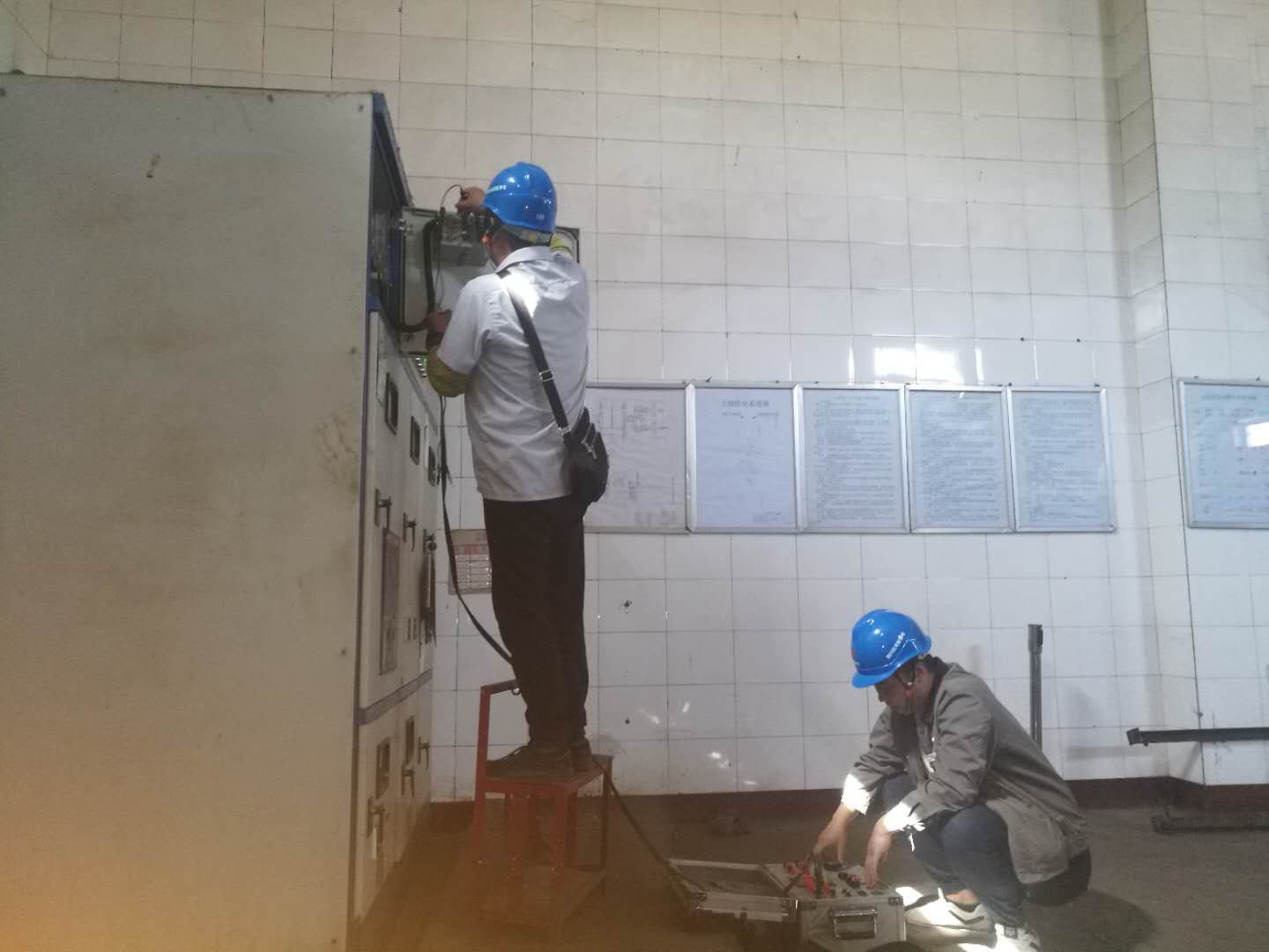 俗話說(shuō):“經(jīng)濟(jì)發(fā)展、電力先行”,欣榮配售電有限公司為保障王石凹礦遺址公園項(xiàng)目建設(shè)能夠用上安全可靠的電能,在接到檢查、測(cè)試、消缺任務(wù)后,打破常規(guī),立即從其它各個(gè)春檢和施工現(xiàn)場(chǎng)抽調(diào)技術(shù)人員組成施工隊(duì)伍,并由該公司工程技術(shù)部長(zhǎng)帶隊(duì)迅速對(duì)王石凹風(fēng)井及主副絞車房供電系統(tǒng)電氣設(shè)備、輸電線路進(jìn)行全面檢測(cè)排查,確保運(yùn)行狀態(tài)安全、穩(wěn)定、可靠。