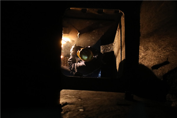 井巷中,傳來陣陣“一二、嘿喲……”的號子聲,打破了一片寧靜,機(jī)電車間職工抬起管路步伐有力堅(jiān)定。綜采隊(duì)職工迅速就位,按照技術(shù)要求拆卸裝置,一二部膠帶進(jìn)行合并。主斜井機(jī)尾處,運(yùn)轉(zhuǎn)隊(duì)職工為膠帶上夾板硫化9#接頭。南風(fēng)井儲水池內(nèi),職工穿上防水服疏通管路。螺旋篩倉里,職工正在使用氧焊修復(fù)襯板。一時間從井下到地面,檢修的旋律瞬間奏響。