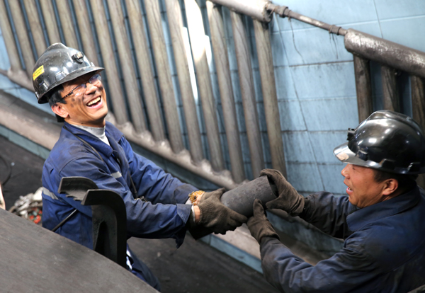 4月29日零點(diǎn),安裝工程正式打響。主斜井系統(tǒng)現(xiàn)場(chǎng),機(jī)電車間、動(dòng)力科、生產(chǎn)科骨干兵合一處,白天黑夜連軸轉(zhuǎn);技術(shù)質(zhì)量組針對(duì)安裝重點(diǎn),與技術(shù)骨干現(xiàn)場(chǎng)監(jiān)督,跟蹤指導(dǎo);安質(zhì)科嚴(yán)格工程安全保障措施,一絲不茍。第一天,物料全部到位,天倫架上掛滑輪、倒鏈、鎖舊膠帶下帶順利完成。第二天,給新皮帶帶頭打夾板、連接7號(hào)絞車鉤頭等近10項(xiàng)工藝有序推進(jìn)。第三天,安設(shè)皮帶托輪架,固定新皮帶……5月2日,突降大風(fēng),沙塵飛揚(yáng)?!帮L(fēng)風(fēng)火火闖九州!哎嗨呀……”工程現(xiàn)場(chǎng)絲毫不受影響,歌聲與互相逗樂(lè)打趣的氛圍,在天輪旋轉(zhuǎn)中涌動(dòng)出一股蓬勃向上的斗志,快樂(lè)的笑聲中,后勤服務(wù)組送來(lái)了茶水、午飯,公司領(lǐng)導(dǎo)也親臨現(xiàn)場(chǎng)送來(lái)了親切的慰問(wèn)和叮囑……