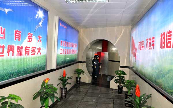 該礦文化長(zhǎng)廊分為企業(yè)文化、安全文化兩大陣地,內(nèi)含127塊燈箱、牌板,全長(zhǎng)193米,依托生產(chǎn)區(qū)隊(duì)值班樓一樓,鏈接入井通道至入井口,遵循“道亦道,非常道”理念,以粉紅色系為主,體現(xiàn)粉色在企業(yè)文化色中的非常之重;輔以藍(lán)天、白云、綠地、金黃等色系,闡釋企業(yè)文化建設(shè)的平常之外,既闡釋“道法自然”,又演繹“大愛無言”。企業(yè)文化長(zhǎng)廊,分為文化擷萃、理念引領(lǐng)兩部分。入口以藍(lán)白色系為主,鏈接以玫紅、粉紅為主,出口以山水畫的墨青墨白色為主,定位“勞動(dòng)光榮、礦工偉大”,遵循集團(tuán)、公司理念引領(lǐng),集結(jié)燈光、圖影與文字,締造“東坡文化”的人文形象,使企業(yè)文化隱于大同小異的燈箱之下,以“激越、浪漫、唯美”的身姿,引領(lǐng)視覺“凝然寂神,思接千載”,看“神馬不是浮云”,上映一臺(tái)“光影秀”。