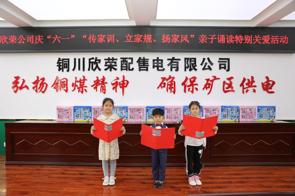 為進(jìn)一步加強(qiáng)職工的幸福感,增進(jìn)親子感情,促進(jìn)親子之間互動和溝通。5月31日,欣榮配售電公司舉辦“慶‘六一’ 傳家訓(xùn) 立家規(guī) 揚(yáng)家風(fēng)”親子誦讀特別關(guān)愛活動,讓職工子女度過一個(gè)歡樂的節(jié)日。