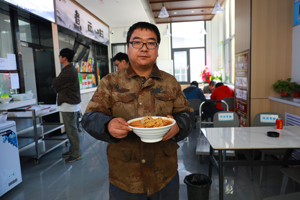 中午12點(diǎn),不少職工來(lái)到餐廳,明廚亮灶下近距離觀看廚師烹制“火出圈”的麻辣燙,葷素搭配,自行挑選,稱重計(jì)量,高湯冒熟后再加上香味撲鼻的油潑辣子,一口下去“熱辣滾燙”,使人胃口大開,價(jià)格公道實(shí)惠,職工直呼“快來(lái)嘗鮮,根本停不下來(lái)”。另一窗口,一個(gè)面劑子在廚師手中搓搓、揉揉再抻一抻,不大會(huì),一碗“一清、二黃、三白、四紅、五綠”的牛肉面就被端上飯桌,讓人垂涎欲滴。