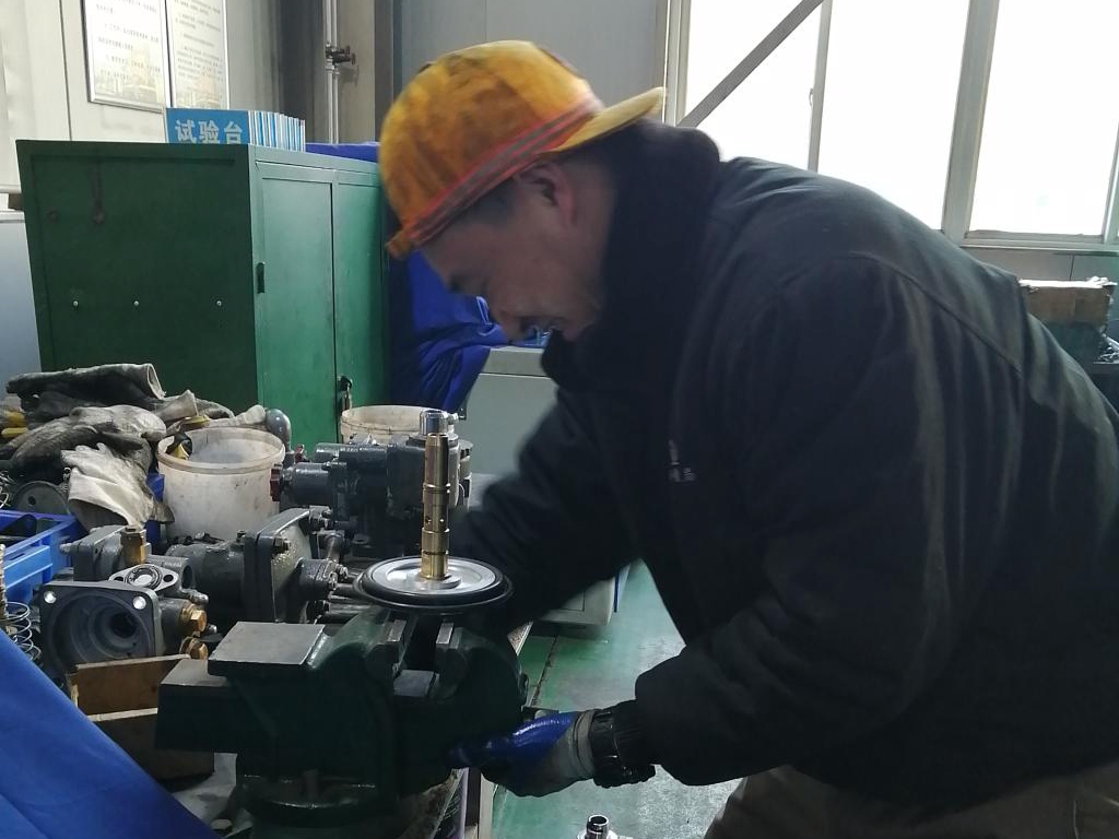 在走行班組考核現(xiàn)場(chǎng),走行班組是對(duì)制動(dòng)缸進(jìn)行解體檢修,更換橡膠件、檢查工作臺(tái)面并拆裝工藝進(jìn)行考試。在操作中選手們“手指口述”語(yǔ)言標(biāo)準(zhǔn)、動(dòng)作規(guī)范。監(jiān)考人員說(shuō):“機(jī)車維修中心這次實(shí)操考核,是技能的大提升,也是職工互相學(xué)習(xí)技術(shù)的平臺(tái)”。