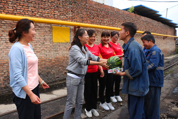 在“安全生產(chǎn)月”活動深入開展之際,玉華煤礦女工協(xié)管員和青年志愿者先后來到5個地面單位,將清涼和“安全叮囑”送進(jìn)生產(chǎn)班組。