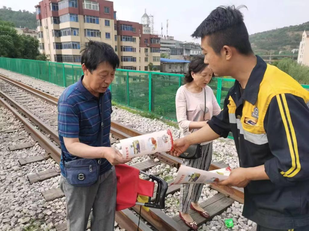 該分公司針對(duì)鐵路沿線居民出行特點(diǎn),組織人員深入重點(diǎn)路段與居民面對(duì)面宣傳安全常識(shí),以通俗易懂的方式向居民講解翻越鐵路護(hù)欄、在鐵路上坐臥、玩耍、拋扔物品、擺放障礙物和拆卸破壞鐵路設(shè)施設(shè)備的行為帶來的危害,并現(xiàn)場(chǎng)發(fā)放安全宣傳手冊(cè)、傳單等宣傳資料300余份。