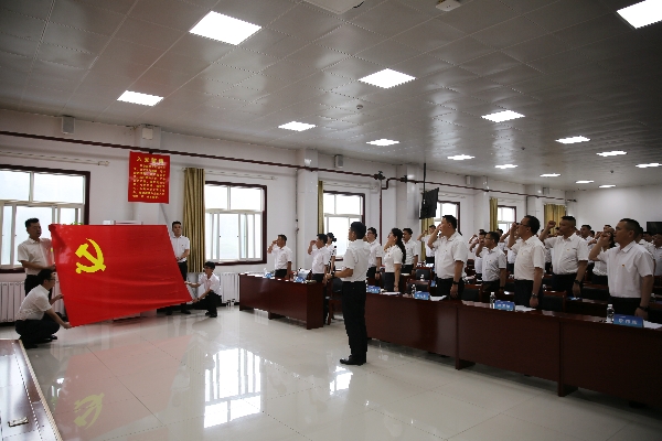 會上,該礦全體黨員莊重地面向黨旗,高舉右拳,重溫入黨誓詞,字字千鈞,激蕩著每一位黨員的初心與使命,喚醒了內(nèi)心深處的責(zé)任與擔(dān)當(dāng)。