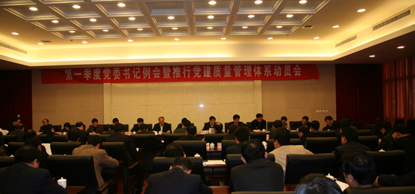 3月10日上午,銅川礦業(yè)公司(局)在煤業(yè)賓館餐廳三樓會議室召開2010年第一季度黨委書記例會。主要內(nèi)容是:貫徹落實局“三會”精神,專題學習、專題研討推行黨建質量管理體系工作,動員各級黨組織和廣大黨員干部提高認識,堅定信心,明確目標,扎實工作,切實做好推行黨建質量管理體系的各項工作,推動公司(局)黨建工作再上新臺階。