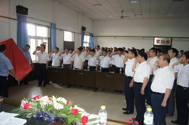 “我志愿加入中國(guó)共產(chǎn)黨,擁護(hù)黨的綱領(lǐng),維護(hù)黨的章程……”6月30日下午,銅川礦業(yè)公司金華山礦100余名共產(chǎn)黨員在四樓會(huì)議室,面對(duì)黨旗莊嚴(yán)高舉右手并握拳,一字一句地大聲宣讀入黨誓詞。此次重溫入黨誓詞活動(dòng)是金華山礦黨委慶祝建黨90周年召開(kāi)黨員大會(huì)的其中一項(xiàng)議程,意在讓黨員回味當(dāng)年入黨的情景,明確黨員的責(zé)任,肩負(fù)起黨員的義務(wù),以黨員的標(biāo)準(zhǔn)嚴(yán)格要求自己,發(fā)揮黨員先鋒模范帶頭作用,團(tuán)結(jié)和帶領(lǐng)全礦干部職工為實(shí)現(xiàn)局礦安全生產(chǎn)任務(wù)目標(biāo)再立新功,再做先貢獻(xiàn)。(圖為全體黨員重溫入黨誓詞情景)