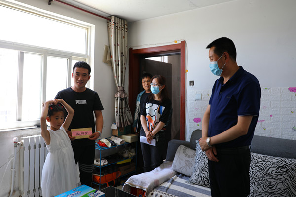 “我上一年級(jí),今天放假不上學(xué),我在家里玩”在職工史永超家中,6歲女兒的稚嫩童聲里充滿歡喜,礦黨政領(lǐng)導(dǎo)和孩子親切的聊起了天。