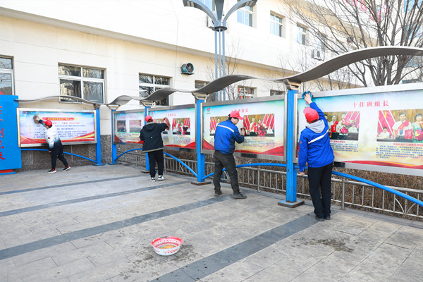 3月3日一大早,該礦青年志愿者自帶抹布、盆、拖布等工具,大家兩兩組合、相互配合,分散到主干道、辦公區(qū)、工業(yè)場所,細(xì)心擦拭文化牌板、燈箱,清潔整理通勤車。 “六個(gè)玉華”文化燈箱位置較高,只見志愿者高低錯(cuò)落、分工合作,不一會燈箱就變的干凈透亮。企業(yè)文化墻高度適中、面積大,女性志愿者不遑多讓,清潔墻面耐心細(xì)致。通勤車行駛沿線,廉潔文化長廊、環(huán)保文化長廊、創(chuàng)新文化長廊,一處處義務(wù)勞動場景熱火朝天,志愿服務(wù)成為最美風(fēng)景線。