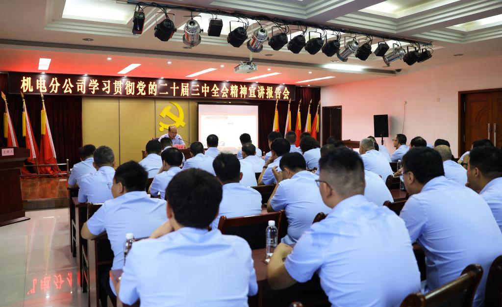 為全面深入學(xué)習(xí)貫徹黨的二十屆三中全會(huì)精神,連日來(lái),機(jī)電分公司嚴(yán)格按照礦業(yè)公司黨委統(tǒng)一安排部署,認(rèn)真組織開(kāi)展黨的二十屆三中全會(huì)精神宣傳宣講工作,推動(dòng)黨的二十屆三中全會(huì)精神落地生根、見(jiàn)行見(jiàn)效,為企業(yè)高質(zhì)量發(fā)展注入新動(dòng)能。