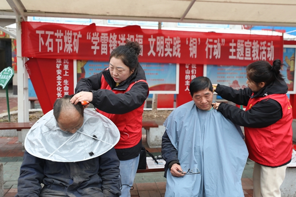 3月4日清晨,初春的欣怡廣場上,《學習雷鋒好榜樣》的悠揚旋律激動人心。由該礦聯(lián)合社區(qū)、醫(yī)院、華遠實業(yè)下石節(jié)分公司、郵政銀行等多個單位聯(lián)合開展的學雷鋒系列活動引來廣大職工群眾廣泛參與。在信訪穩(wěn)定、普法宣傳、消防安全、免費維修日用品、文明實踐、健康服務、免費理發(fā)和社區(qū)服務多個宣傳臺前,廣大黨員、團員青年和女工家屬志愿者們熱心地為前來咨詢的職工家屬提供文明服務。大力開展普法教育、消防安全、防范金融風險和文明志愿服務等宣傳活動,廣泛宣傳文明理念,發(fā)放各類宣傳資料,認真細致地為大家答疑解惑,解決問題。機電車間義務家電維修點的青年志愿者們巧手修復小家電等生活用品。健康義診區(qū)醫(yī)護人員為職工家屬量血壓、講養(yǎng)生知識人氣滿滿。社區(qū)服務臺前的理發(fā)師手中剪刀翻飛義務剪發(fā),志愿者積極為大家磨刀磨剪子等用品,用行動倡導踐行著奉獻、友愛、互助、進步的志愿精神,贏得來往職工家屬的紛紛點贊。