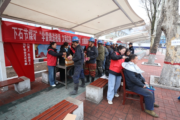井口“文明驛站”里,志愿者們設立文明服務臺,擺上血壓計、縫紉機和安全慰問品,搭建起文明服務的新陣地。開展安全知識競答,讓職工在輕松愉快的氣氛中學習文明常識、提升安全技能,收獲安全祝福。女工家屬志愿者們飛針走線為礦工縫補破損工裝。一句“把安全放在心上,祝您工作順利,家里可都盼著呢!”的溫馨祝福,讓即將入井的職工倍感溫暖,用親情協(xié)管筑牢安全生產第二道防線。
