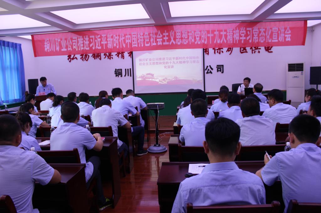 本次宣講由銅川礦業(yè)公司宣講團(tuán)成員——下石節(jié)煤礦紀(jì)委書記李俊輝同志擔(dān)任,他以《高舉習(xí)近平新時代中國特色社會主義思想偉大旗幟 立足新時代 邁步新征程 開創(chuàng)“煤”好未來》為主題,從深刻領(lǐng)會習(xí)近平新時代中國特色社會主義思想和黨的十九大精神的時代意義,習(xí)總書記在全國國有企業(yè)黨的建設(shè)工作會議和全國宣傳思想工作會議上的重要講話精神解讀,以永遠(yuǎn)在路上的執(zhí)著推動全面從嚴(yán)治黨向縱深發(fā)展三個方面為大家進(jìn)行了詳細(xì)而又精彩的講解,使廣大黨員干部,更加深刻地領(lǐng)會了習(xí)近平新時代中國特色社會主義思想的歷史地位和豐富內(nèi)涵,進(jìn)一步樹立了新時代需要新思想指引,新征程需要新理論領(lǐng)航的新思想理念。