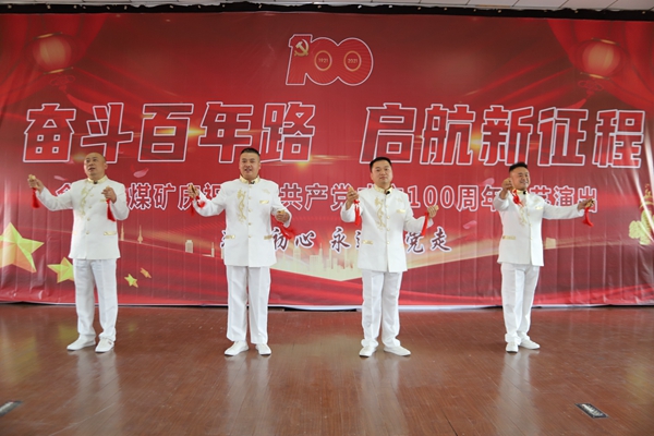 下午2:30,文藝演出在舞蹈《我們的中國夢》中拉開了帷幕。 通過精心編排舞蹈、小品、歌曲獨(dú)唱、紅歌合唱、詩朗誦、樂器獨(dú)奏(葫蘆絲、笛子)、快板、講述紅色故事等節(jié)目,迎來場下職工群眾熱烈的掌聲。小品《我想入黨》把現(xiàn)場氣氛推向高潮,在場的黨員干部受小品情景感染舉起右拳,一同與小品演職人員面向黨旗重溫入黨誓詞,用實(shí)際行動(dòng)踐行著入黨之初的錚錚誓言,用煤礦工人能吃苦、善打硬仗的優(yōu)良傳統(tǒng)為振興安全、穩(wěn)定、和諧、美麗的礦區(qū)而努力奮斗。