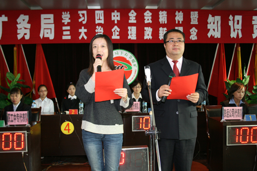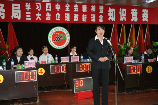 日前,局黨委宣傳部牽頭,先后在全局24個(gè)單位,分王石凹礦、下石節(jié)礦和供應(yīng)處三個(gè)分賽場(chǎng),舉辦了局學(xué)習(xí)宣傳黨的十七屆四中全會(huì)精神暨“三大治企理政新理念”現(xiàn)場(chǎng)知識(shí)競(jìng)賽選拔賽。本次競(jìng)賽,以“學(xué)習(xí)宣傳黨的十七屆四中全會(huì)精神暨局“三大治企理政新理念”為主題,分十七屆四中全會(huì)、新中國(guó)偉大成就、局情礦史、局“三大治企理政新理念”四部分內(nèi)容進(jìn)行比賽。經(jīng)過(guò)三場(chǎng)激烈的預(yù)賽,王石凹礦、一五三廠、鴨口煤礦有限責(zé)任公司、下石節(jié)礦、玉華礦、鐵運(yùn)公司、中心醫(yī)院、局機(jī)關(guān)和供應(yīng)處9個(gè)單位入圍決賽。據(jù)悉,總決賽將于11月11日在銅川煤業(yè)賓館舉行。