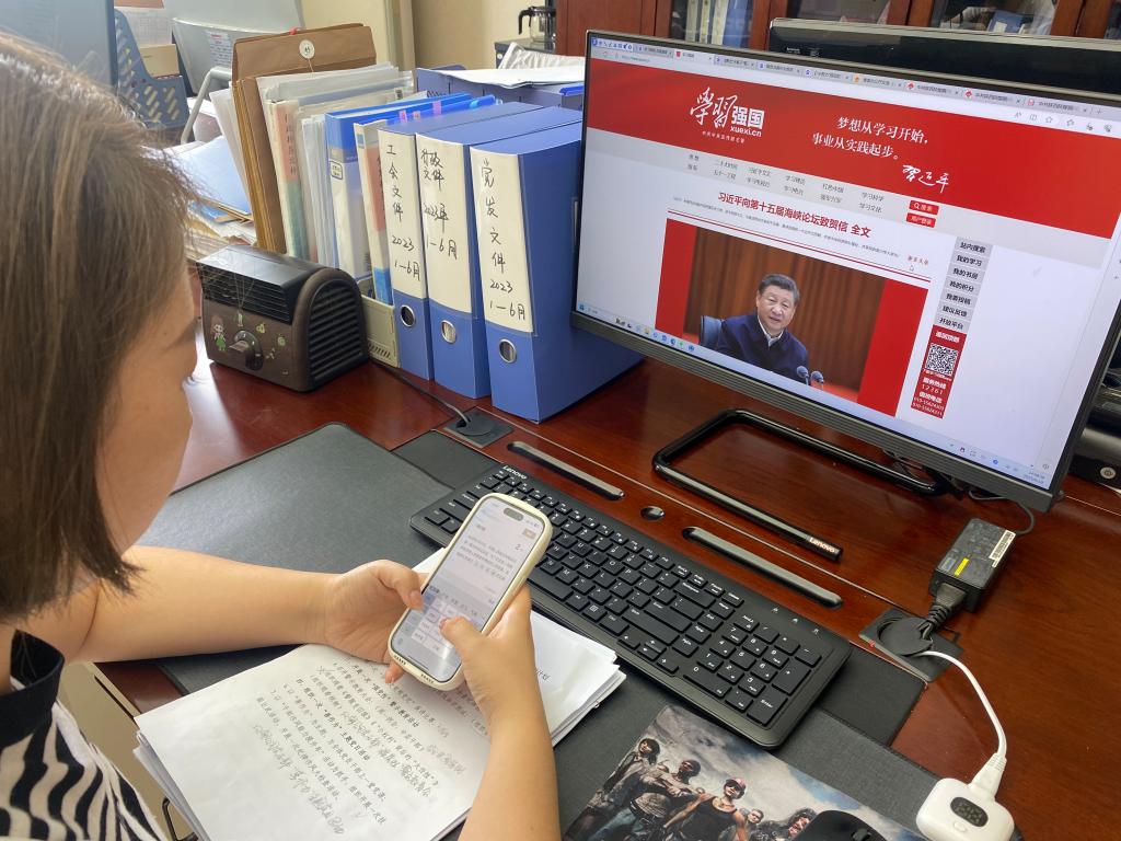 “小丁,‘學(xué)習(xí)強(qiáng)國’排行榜你又是第一名,分?jǐn)?shù)那么高是不是有啥絕招,趕快給我傳授下。”剛發(fā)展為預(yù)備黨員的許彥武向排名靠前的丁欣怡討教了起來。