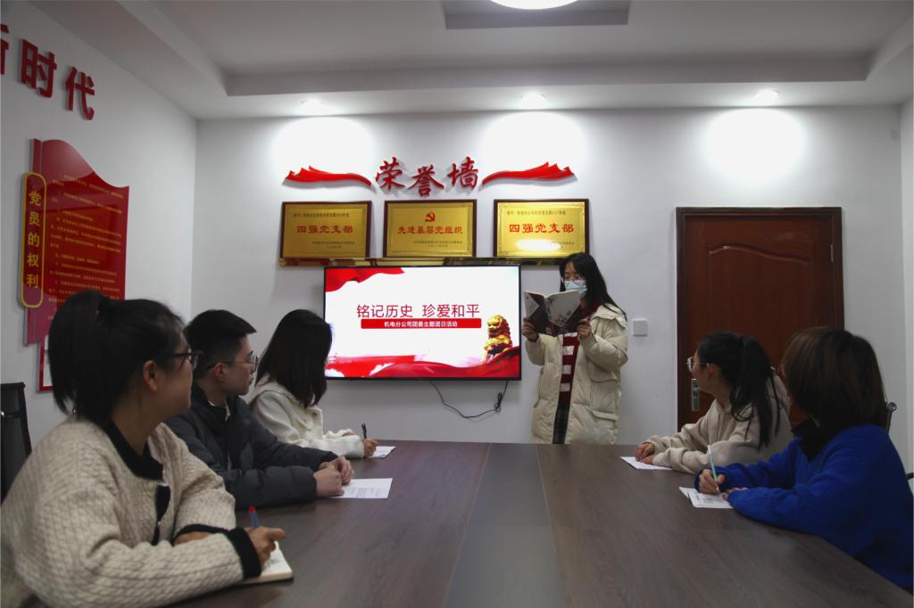 近日,機電分公司團委開展“銘記歷史 珍愛和平”為主題的團日活動,旨在讓青年團員深入了解歷史,感受祖國的偉大和人民的堅韌。